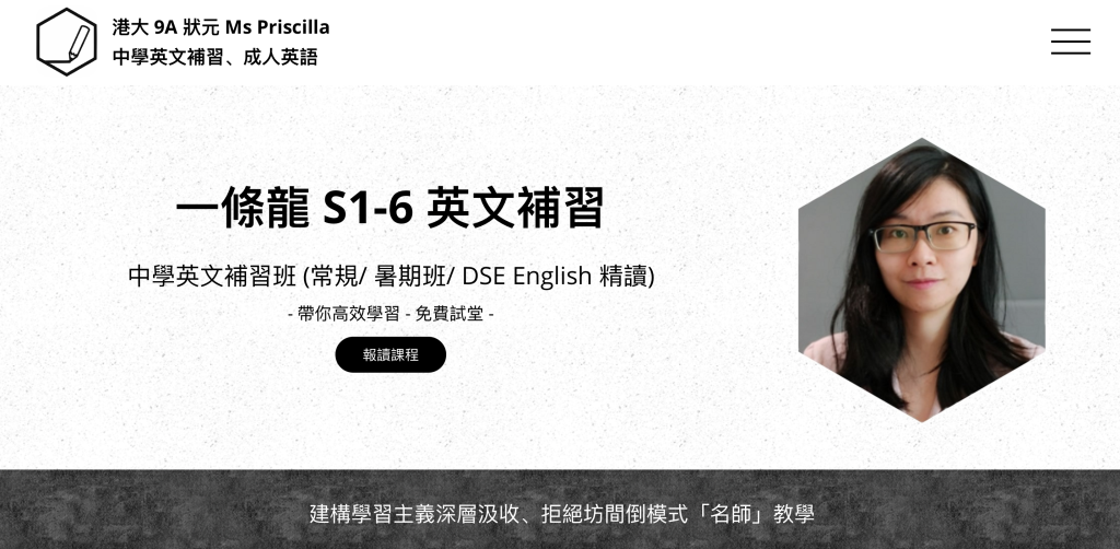 Ms Priscilla 於香港大學精算系一級榮譽畢業,公開試全科 9A 狀元,每年均考進 Dean’s Honours List (大學優秀榮譽名單),現為香港文憑試DSE 英文、中學英文、 以及成人英語補習老師。綜合逾 14 年全職教學經驗,深明學習秘訣以及正確讀書之道,教學屢獲好評,累積逾數千學生,贏盡口碑。